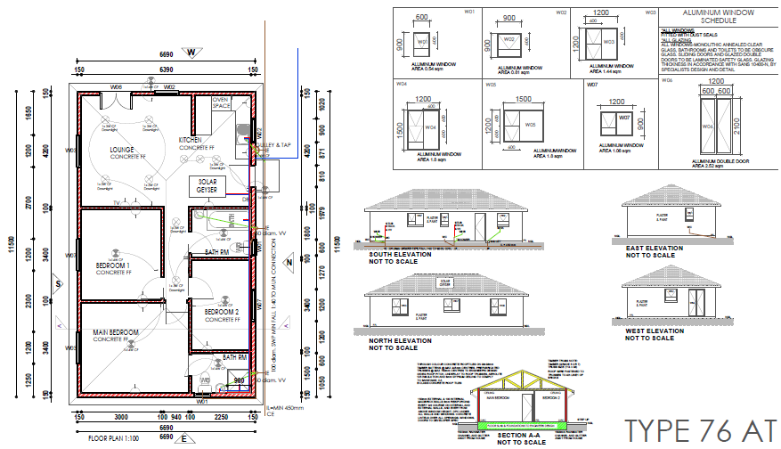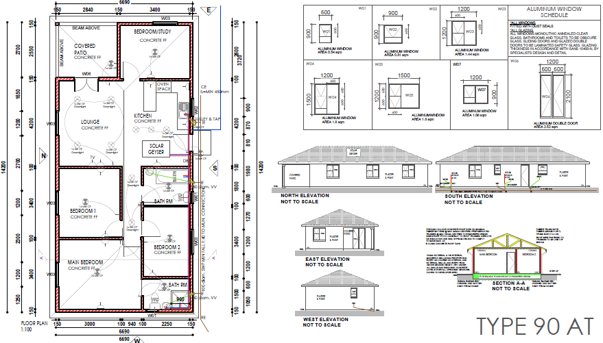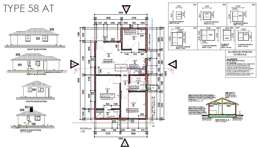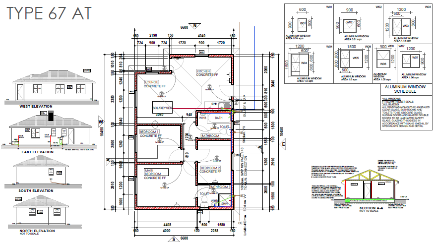 Dawn City Floor Plan options are Based on the Size of the house with a Tuscan Design Roof, house sizes are from 58sqm to 113sqm respectively